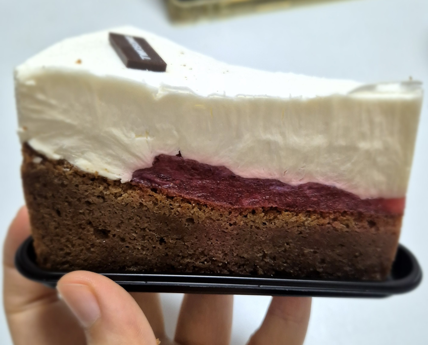 케이크의 가장자리는 콩포트가 없어요.ㅎㅎ 그래서 치즈 생크림과 분리가 되기 때문에 잘 분배해서 먹어야 할 것 같습니다.ㅎㅎ