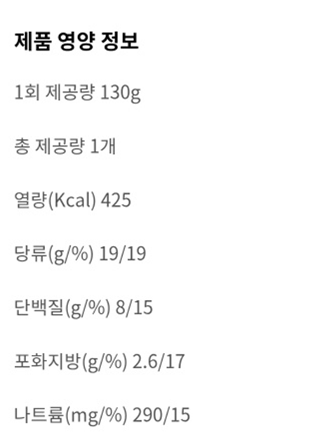 둥글고 탐스러운 크림빵이에요. 무게도 꽤 묵직하고 무겁게 느껴집니다.ㅎㅎ 제품 영양 정보를 참고해 주세요~