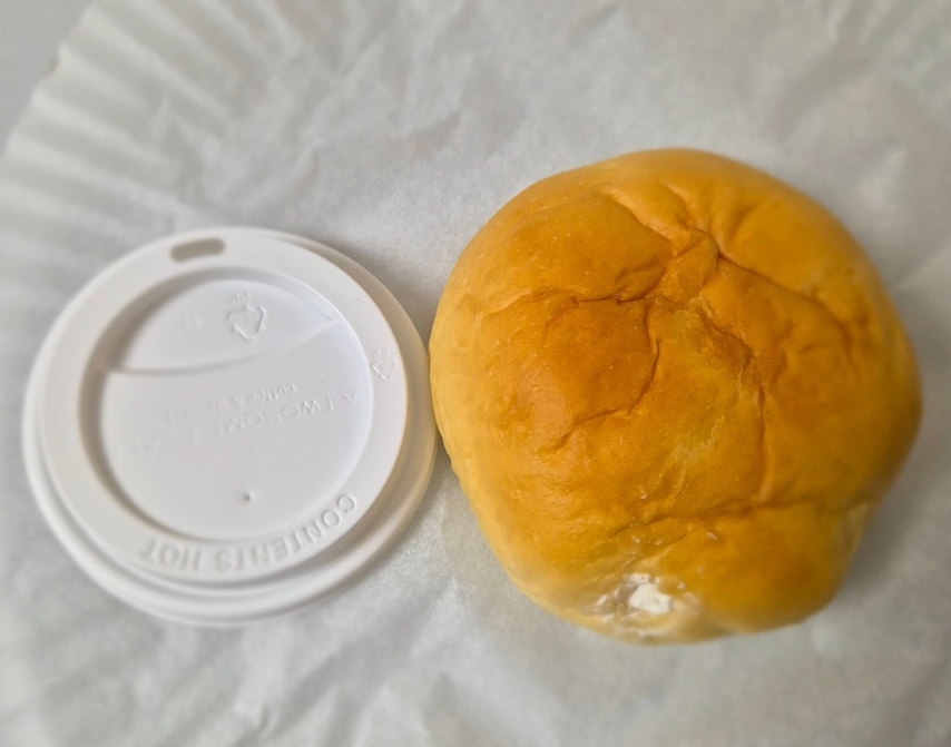 레귤러컵 뚜껑과 비교해 보면 뚜껑보다 조금 더 크고 빵의 높이도 무지 높아요.ㅎㅎ 안에 크림이 가득 있는 게 느껴질 정도로 겉도 촉촉합니다.ㅎㅎㅎ