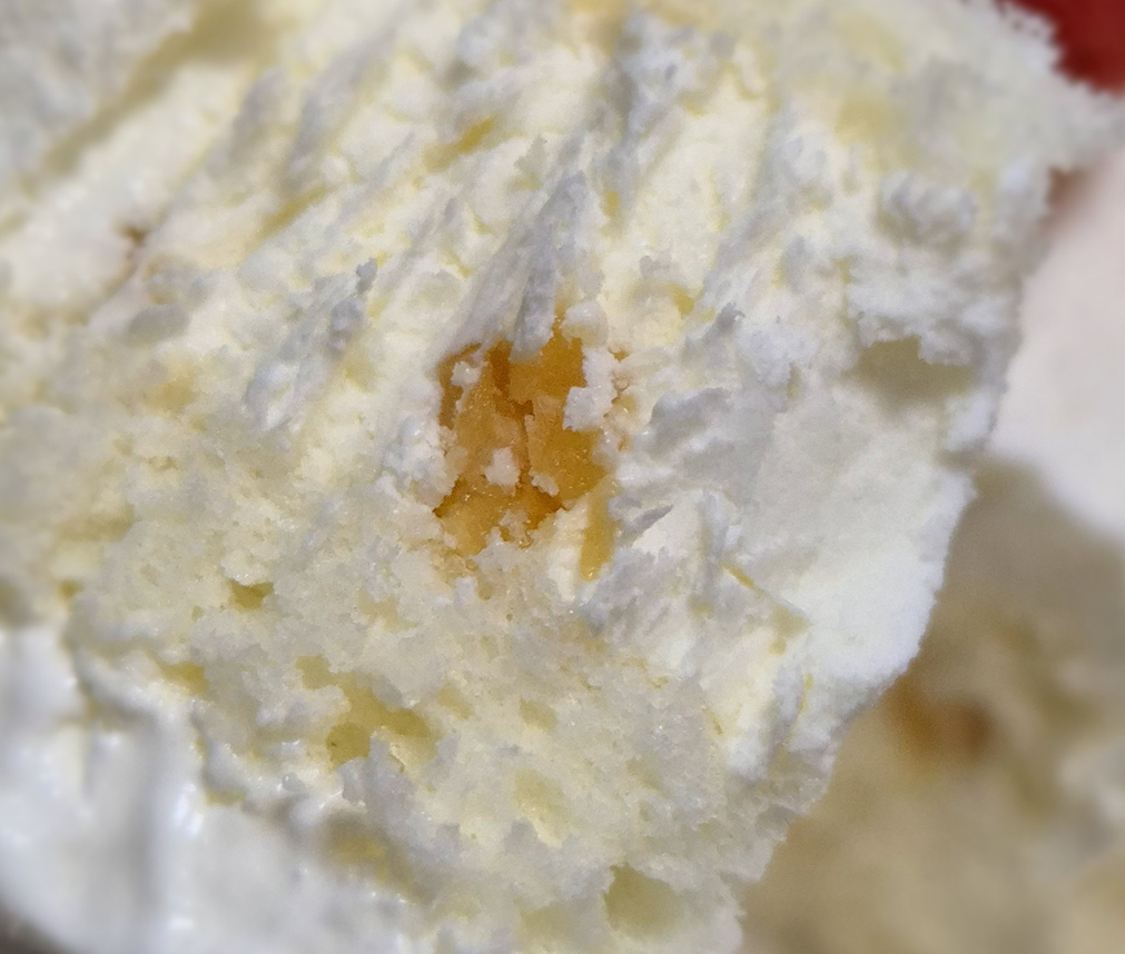 달걀 흰자만 사용한 엔젤 쉬폰이 퐁신퐁신하게 부드러운 것도 마찬가지였습니다. ㅎㅎ 화이트 스초생 홀케이크는 테두리의 빵 때문에 빵의 비중이 더 많지만 떠먹는 화이트 스초생은 크림의 비중이 더 많아요.