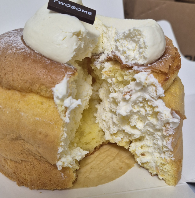 위에 올라간 크림의 두께도 두툼하고, 쉬폰 안에도 크림이 가득입니다. ㅎㅎ