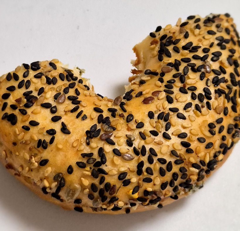 멀티 그레인 베이글입니다. 런던 베이글 뮤지엄의 에브리띵 베이글과 비슷한 비주얼같지만 런던 베이글보다는 아주 살짝 빈약해 보이기도 합니다. 참깨와 곡물이 올라간 갈릭 어니언이에요.