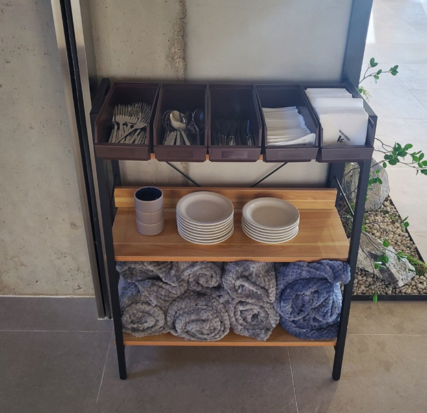 층마다 담요나 식기가 필요할 때 챙겨갈 수 있는 곳도 있습니다. ㅎㅎ