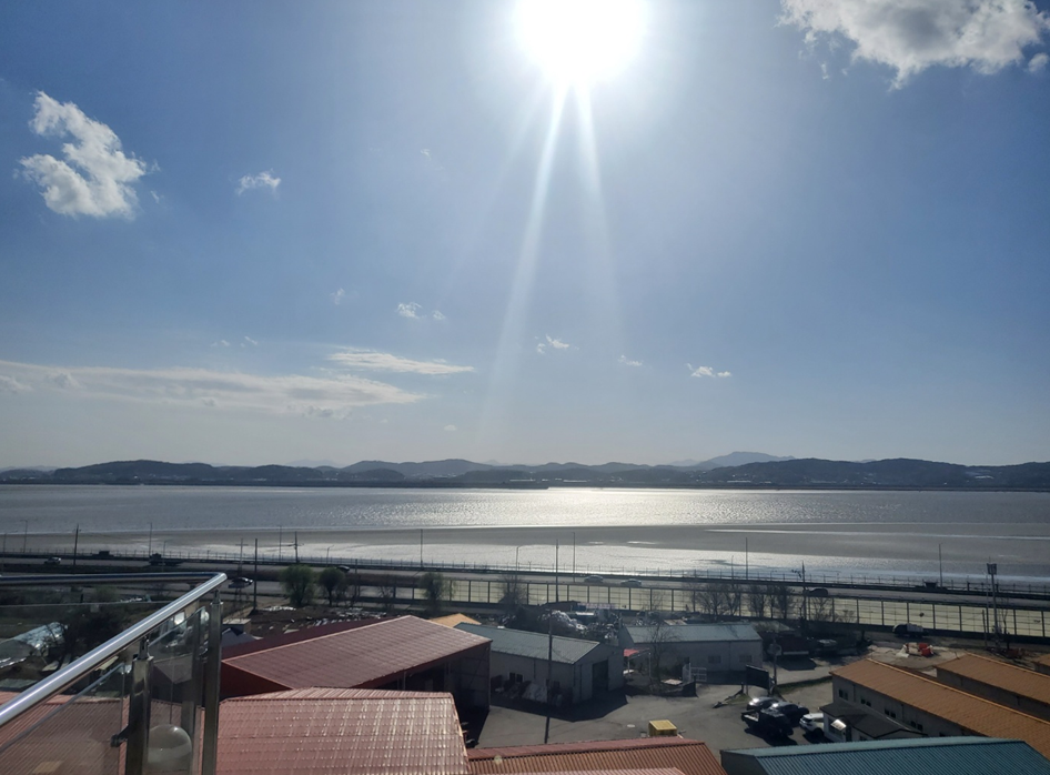 루프탑에서 보이는 한강의 모습입니다! 한눈에 담기가 어려울 만큼 탁 트여서 가슴이 시원했습니다!ㅎㅎ