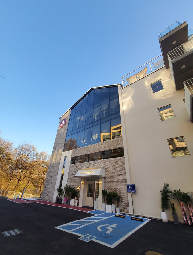 바로 주차공간들이 있고, 조명이 예쁘게 밝히고 있는 입구가 나옵니다. ㅎ