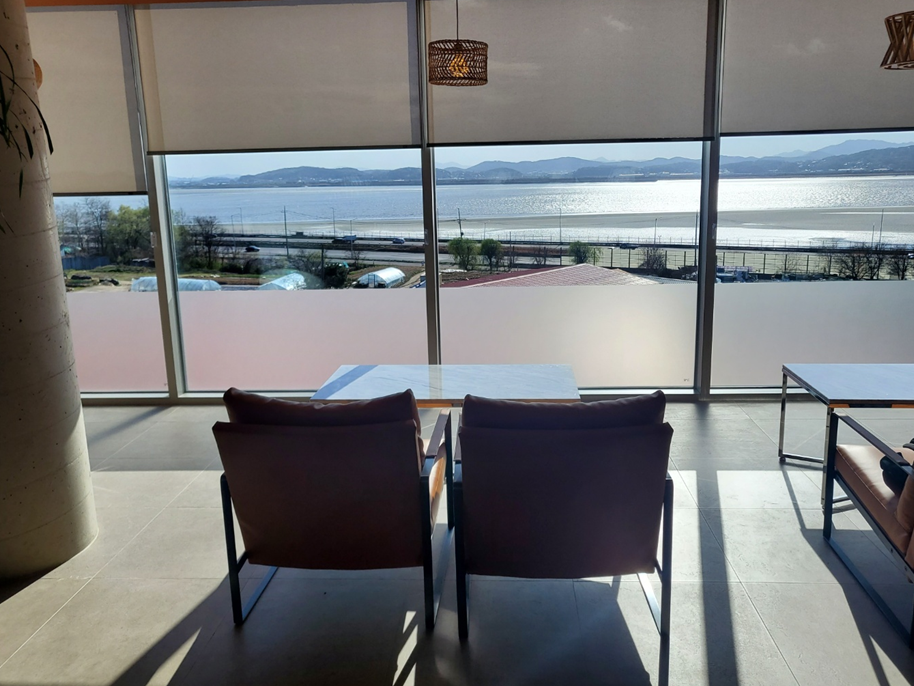 제가 앉은 곳에서 바라보는 창 밖 풍경이예요.ㅎㅎ 앞에 가리는 건물 하나 없이 멍 때리고, 구경하기 정말 좋았습니다. ㅎㅎㅎ