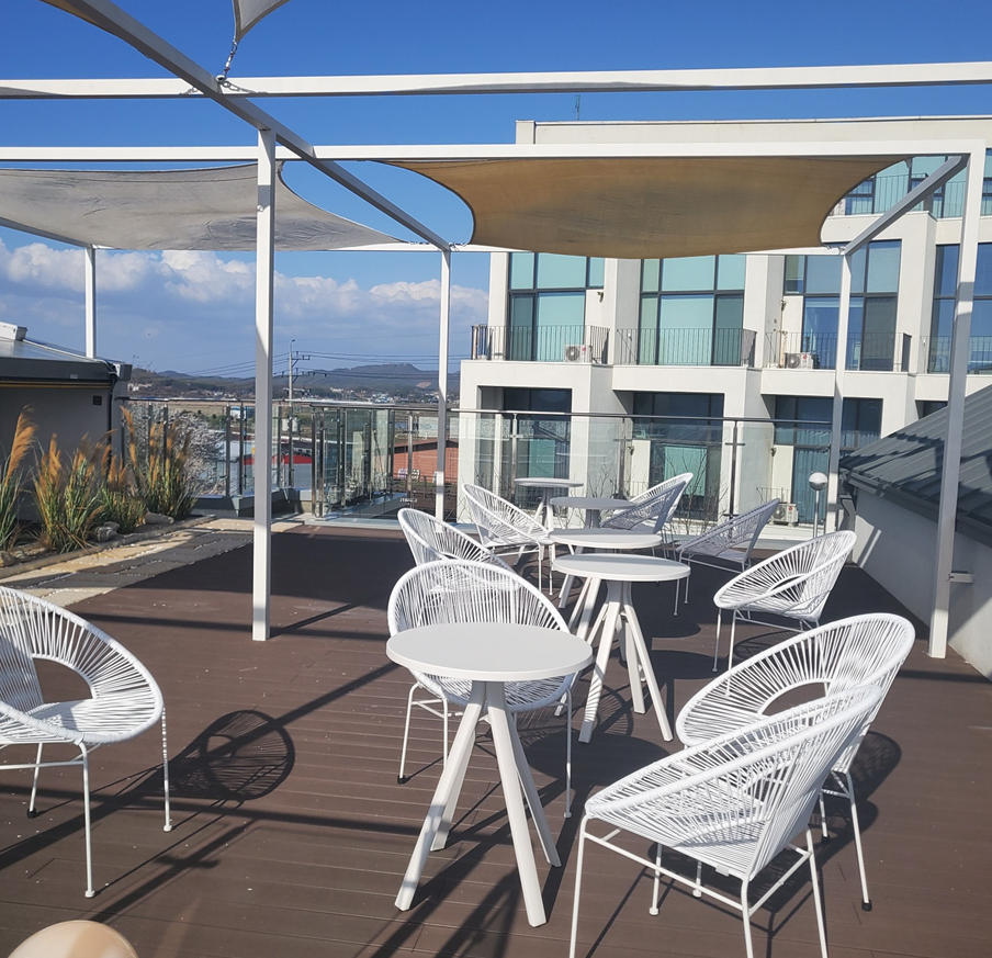루프탑까지 올라가봤는데요, 날씨가 정말 끝내주게 좋았어요! 그렇지만 바람이 너무 세서 추위에 약한 저는 실내로 들어갔습니다.ㅠㅠㅎㅎ 바람이 좀 잦아지면 루프탑에 꼭 앉고 싶어요ㅠㅎㅎㅎ