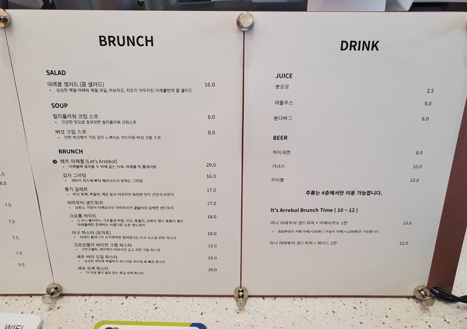 - 라스트 오더_ 브런치_21:00 / 커피, 베이커리 21:00