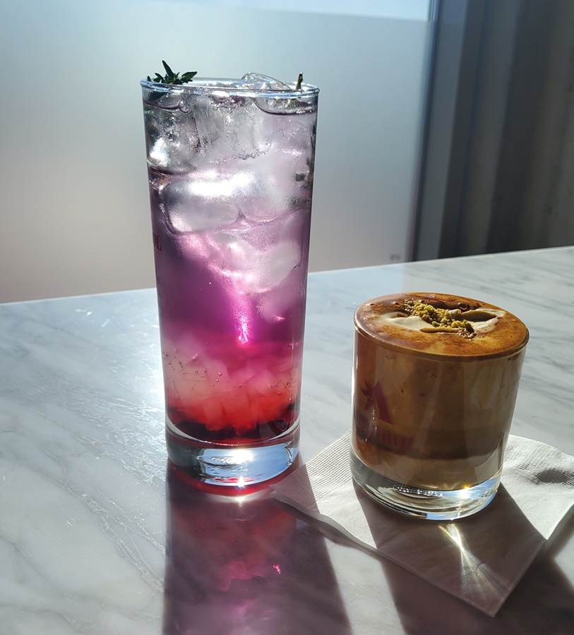 저는 아레볼 에이드와 피스타치오 크림 라떼를 주문했습니다! 노을을 연상시키는 시그니처 메뉴라는 말에 기대가 되었어요. ㅎㅎ