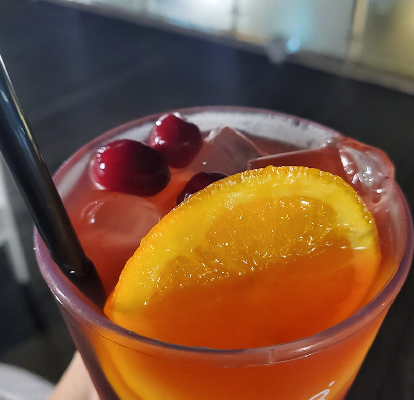제가 주문한 스페셜 아이스티입니다. 오미자와 오렌지, 체리가 들어가 있어서 오렌지 슬라이스, 체리가 동동 띄어 있습니다.ㅎㅎ