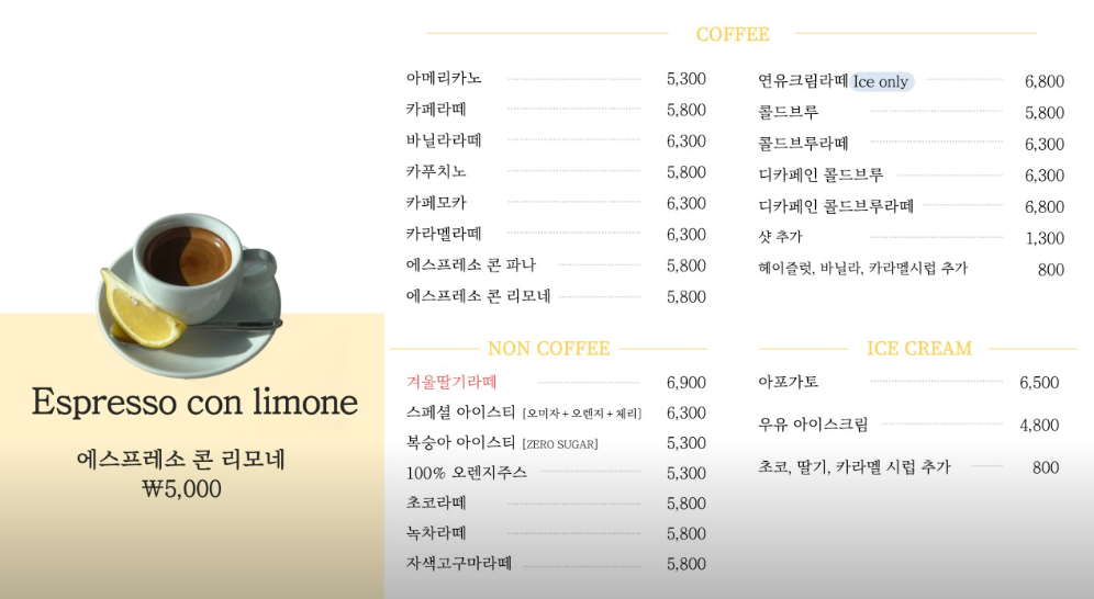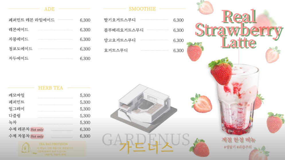 메뉴는 네이버지도에도 나와 있습니다.ㅎㅎ 저는 스페셜 아이스티를 주문했어요. 오미자, 오렌지, 체리가 들어간 음료예요. 6,300원으로 살짝 가격대가 있는 편입니다.