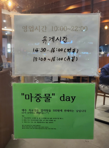- 영업 시간_ 10:00 ~ 22:00 / 휴게 시간_ 14:30 ~ 16:00