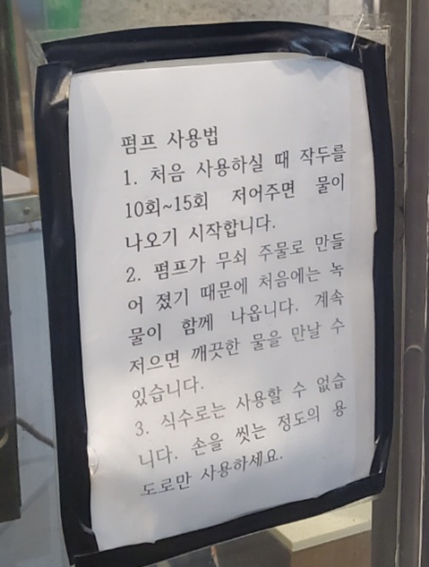 그리고 또 재미있던 것이 입구 바로 옆에 펌프가 있어요.ㅎㅎ 아주 오래된 것으로 보이는 데 식수로는 불가합니다. ㅎㅎ