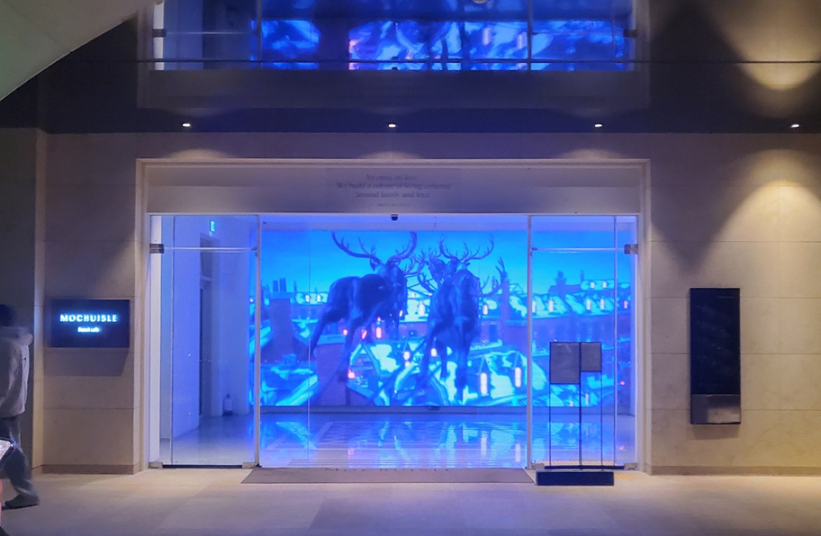 이렇게 대형 영상이 나오는 곳으로 가시면 2층으로 가는 입구를 찾으실 수 있습니다. ㅎㅎ 영상이 엄청 화려하고 멋있어서 친구와 같이 한참을 사진 찍고 있었네요. ㅎㅎ 엘리베이터도 있으니 참고하세요!