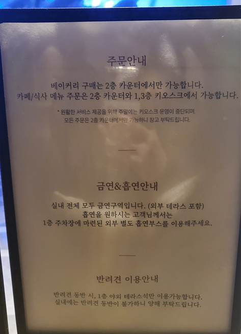 - 반려 동물 동반 시 1층 야외 테라스만 이용 가능 *실내 동반 불가