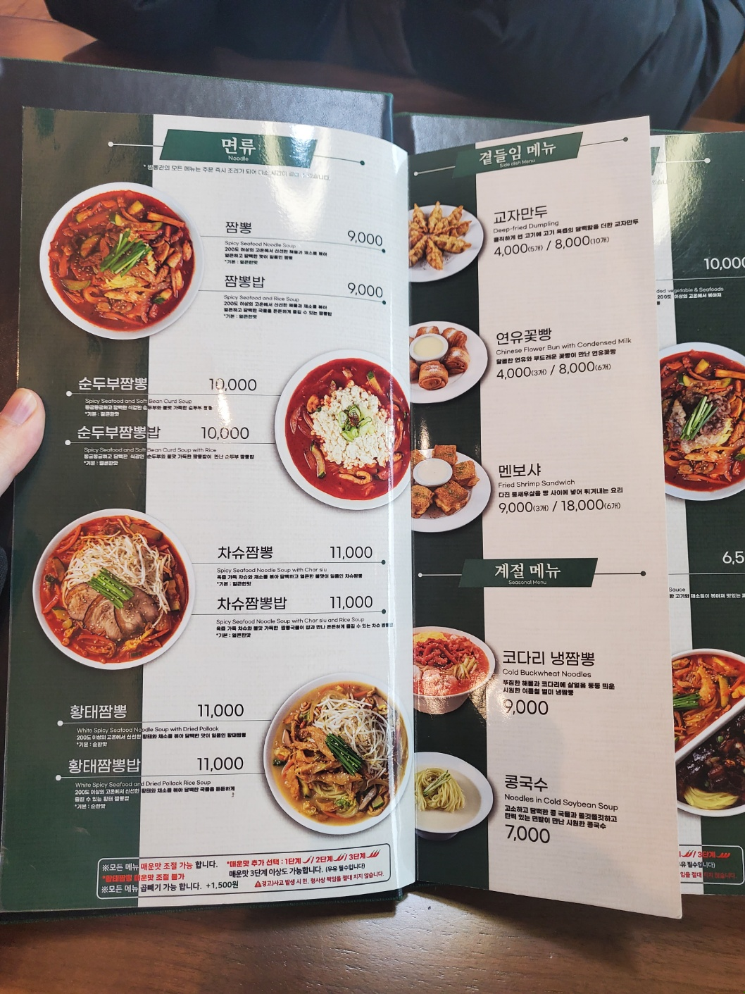 메뉴판은 이렇습니다! 저는 순두부 짬뽕이 유명하다고 해서 갔지만 볶음 요리를 좋아해서 볶음 짬뽕이랑 엄청 고민이 되더라고요! 결국엔 볶음 짬뽕을 골랐고, 친구는 차슈짬뽕을 주문헀습니다!ㅎㅎㅎ 볶음 짬뽕이 없는 집이 많기 때문에 온 김에 먹어야겠더라고요.ㅎㅎ 그리고 탕수육(소)도 주문했습니다. ㅎㅎ