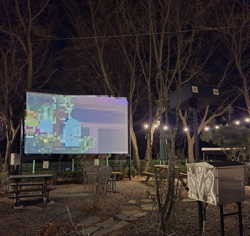 한 쪽으로는 스크린에 영화가 나오고 있었습니다. 그리고 야외석도 준비가 많이 되어 있었고, 텐트자리도 있어 가을이나 봄에 즐기기 좋아 보였습니다.