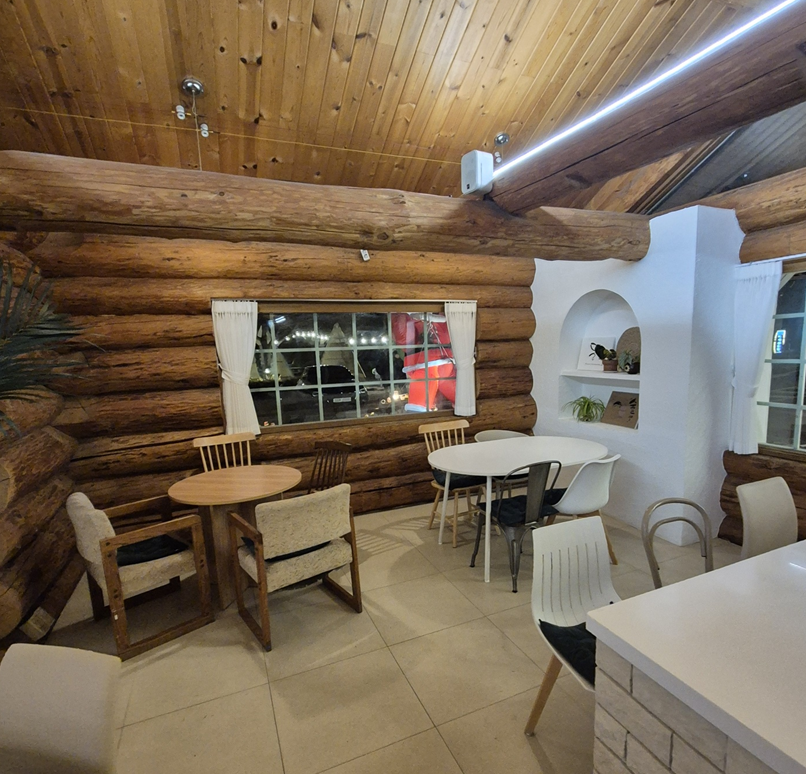 통나무 집으로 된 건물이어서 그런지 서정적인 느낌이 들고 괜스레 따뜻해졌습니다. 카페 한 쪽에는 마루도 있어 편히 앉아 이용할 수 있는 테이블도 있었어요.