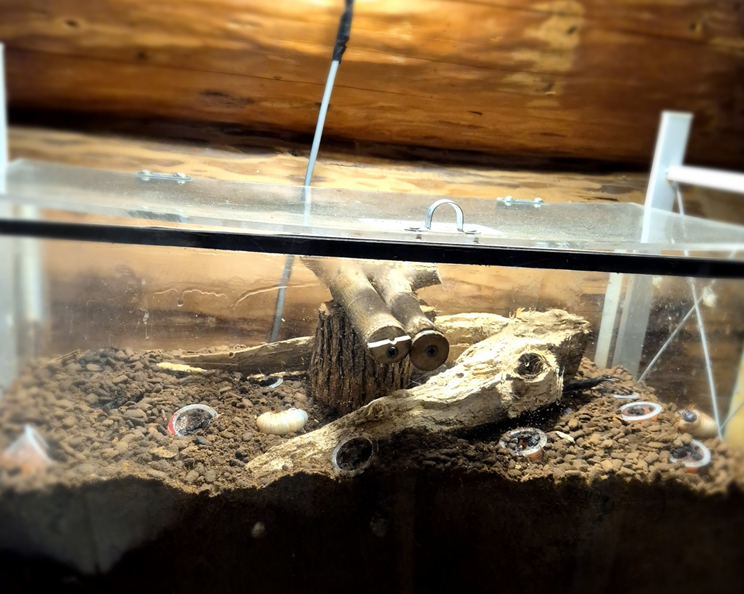 들어가면 한쪽에 굼벵이를 키우고 계셔서 볼 것이 참 많은 곳 같았습니다.ㅎㅎ 들어가자마자 장식으로 꾸며 놓으신 장작과 화구가 있어요. 그 주위로 스파클링 폭죽, 비눗방울, 어릴 적 먹던 불량식품이나 과자들이 있었습니다.