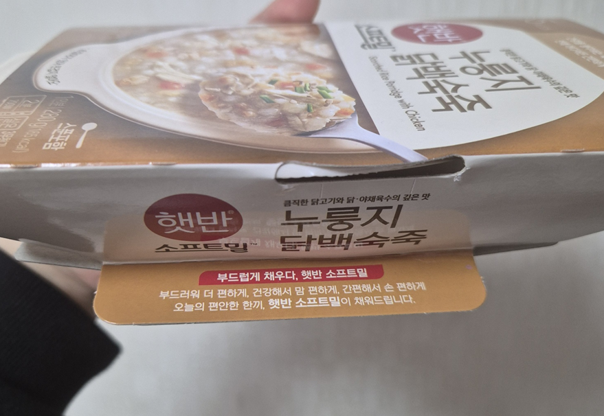 치료를 위해 발치를 하게 됐어요. 시간이 늦기도 했고, 밥도 못 먹었는데 죽 끓일 기력도 없어 구매하게 된 햇반 누룽지 닭백숙죽입니다. 편의점에 갔더니 이 햇반 소프트밀 누룽지 닭백숙죽 하나가 남아 있더라고요. 맛은 정말 좋았는데 발치 후엔 조심해야 할 것 같아 후기를 쓰게 되었습니다. ㅎ