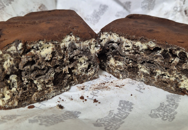포장을 뜯으면 유산지로 싸여 있는데 살살 벗기면 케이크, 크림, 케이크, 쿠키로 샌드가 되어 있습니다.ㅎㅎ 케이크 부분은 정말 폭신폭신해서 조심해야겠더라고요!