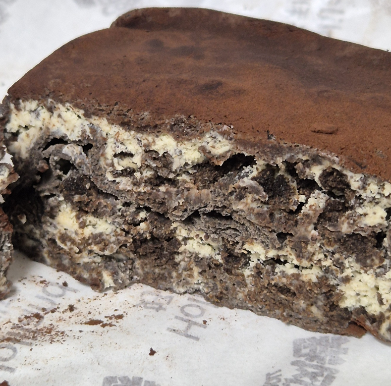 조각을 낼 수록 결이 살아 있는 걸 볼 수 있습니다.ㅎㅎ 저는 냉장으로 보관한 상태로 먹어서 촉촉한 빵처럼 먹었어요.ㅎㅎ 크림이 듬뿍 있어 조금은 느끼했지만 그래도 오레오 맛이 강해서 오레오 맛으로 먹기 좋았습니다.ㅎㅎ 크레페는 녹아서 그런지 크림이랑 같이 먹으니 정말 쭌덕하더라고요.ㅎㅎ