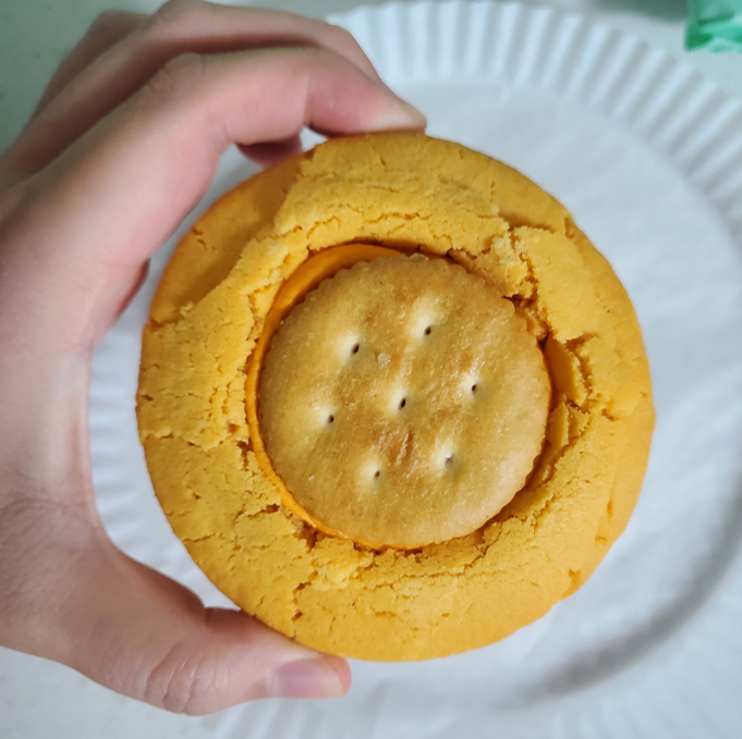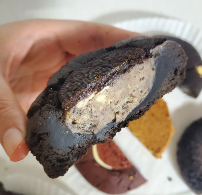 어느 디저트를 먹든 가장 좋아하는 맛이 오레오 맛인데요.ㅎㅎ 쿠키도 빠질 수 없습니다. ㅎㅎ 오레오 크림치즈 맛입니다.  레드벨벳과 비슷하게 생긴 이 녀석이 바로 오레오 크림치즈입니다.ㅎㅎ 가장 두툼했던 쿠키였던 거 같아요.ㅎㅎ 그리고 역시 오레오 좋아하는 저에겐 가장 맛있던 맛입니다. ㅎㅎ 쿠키앤크림 아이스크림 맛을 닮은 크림치즈였고, 저는 차갑게 얼려 먹으니 더 아이스크림같이 느껴졌어요.ㅎㅎ