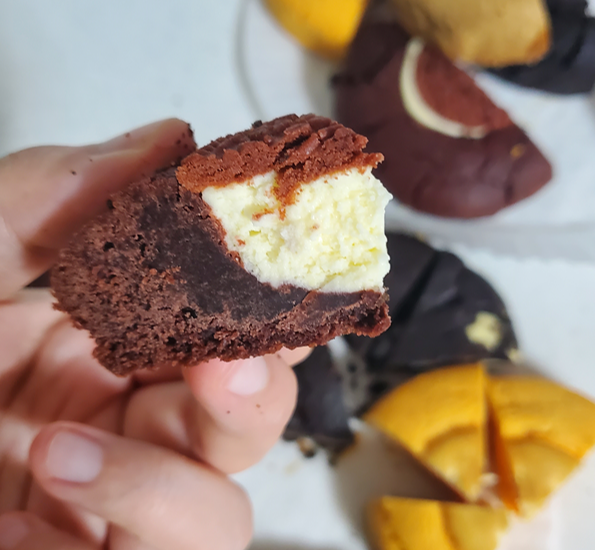 단면 모습입니다.ㅎㅎ 두께가 보이시나요?! 반죽보다 크림치즈의 양이 더 많은 것 같네요.ㅎㅎ 꾸덕꾸덕한 식감의 치즈가 그대로 보이고 있습니다.ㅎㅎ