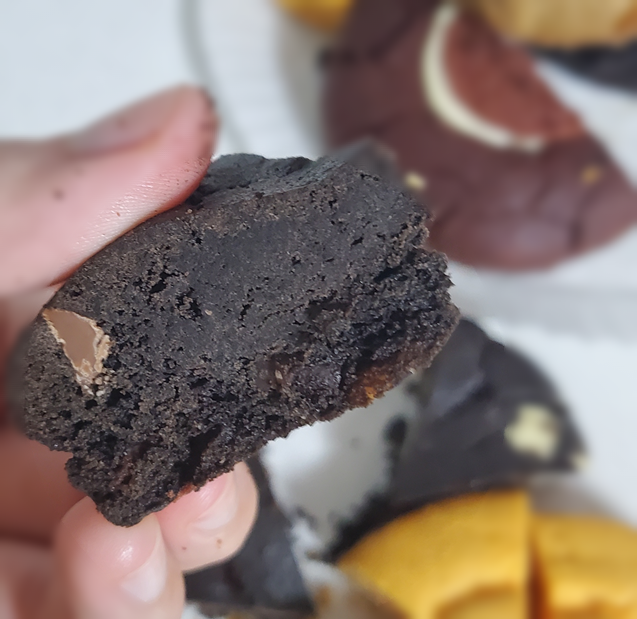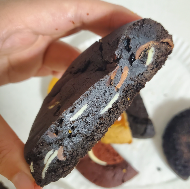 마지막으로 트리플 카카오입니다. ㅎㅎ 카카오 반죽에 화이트, 밀크, 다크 초콜릿 칩이 속속 박혀있는 쿠키입니다. 사실 큰 기대 없이 여섯 개 사려고 마지막에 채운 쿠키인데 오마나 세상에 안 먹었으면 아쉬울 뻔했네요.ㅎㅎ 특히 여성 분들 한 달에 한 번씩 단 거 땡기 실 때 하나? 어쩌면 1/2만 드셔도 충분하실 맛이었습니다. ㅎㅎ