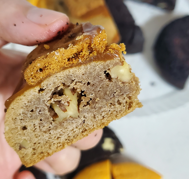 솔티드 로투스입니다. ㅎㅎ 황치즈보다 단짠의 형님이죠.ㅎㅎ 캐러멜이 찐득하니 뿌려있어 먹기엔 다소 불편했으나 먹을 때 지저분해지고, 먹기 힘들수록 더 맛있는 거 아시죠?ㅋㅋㅋ 맛있었어요...ㅎㅎㅎ 다만 아쉽게도 제가 피해 가지 못한 호두가 들어있었어요.ㅎㅎ 호두를 좋아해서 그냥 먹었는데, 역시 저는 견과류는 그냥 견과류로만 먹는 게 좋더라고요..ㅠㅠ 그렇지만 이왕 제 손에 들어온 거 맛있게 먹을 자신 있습니다:-)ㅎㅎ