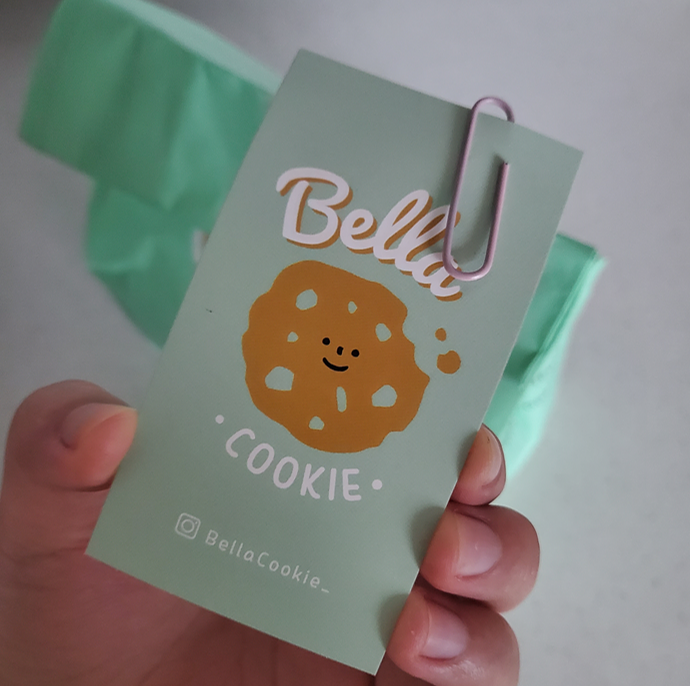 좋은 재료가 좋은 쿠키를 만든다! 라는 모토로 좋은 재료만 엄선하여 만든 쿠키라고 하니 기대가 되었습니다.ㅎㅎ 명함도 너무 귀엽네요.ㅎㅎ 맛있게 먹는 방법도 친절히 적혀있었어요.ㅎㅎ 차갑게 먹어야 맛있다! 잊지 마시길! ㅎㅎㅎ