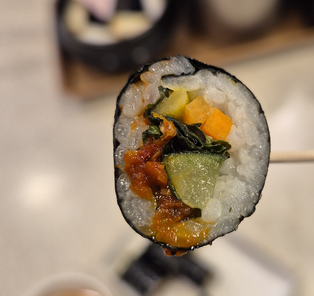 볶음김치, 크래미, 낙지젓갈입니다. 사실 특별히 맛있는 맛은 모르겠습니다만, 간단히 요기하기 좋은 김밥인 것 같아요. 아마 이동 중에 간단히 때울 수 있는 먹거리가 필요할 때 찾기 좋은 음식이었습니다. 친절을 기대하지는 말아야 할 것 같아요...ㅎㅎㅎ