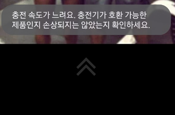 케이스를 뺀 뒤에 다시 충전 해봤는데 여전히 잘 안 되더라고요.. 제대로 도킹되지 않았나 싶어 여러 번 다시 꽂아도 보고, 건들지 않고 그대로 두었는데 계속 진동이 울렸네요! 충전이 됐다가 안 됐다가 계속 반복되다가 호환 가능한 제품인지, 손상되지 않았는지 확인하라고 나왔습니다.ㅎㅎㅎ