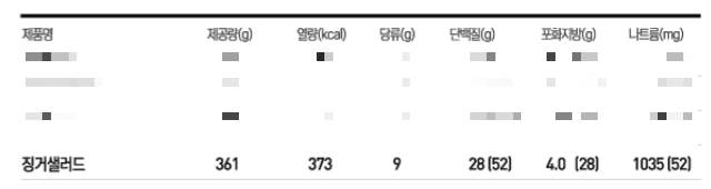 먼저 열량을 보면 포스터에도 볼 수 있듯이 373Kcal인 걸 확인할 수 있어요! 패스트푸드인데 꽤 건강하네? 싶었는데 실물을 보고 아, 적은 이유가 있었군! 할 수 있었죠..ㅎㅎ