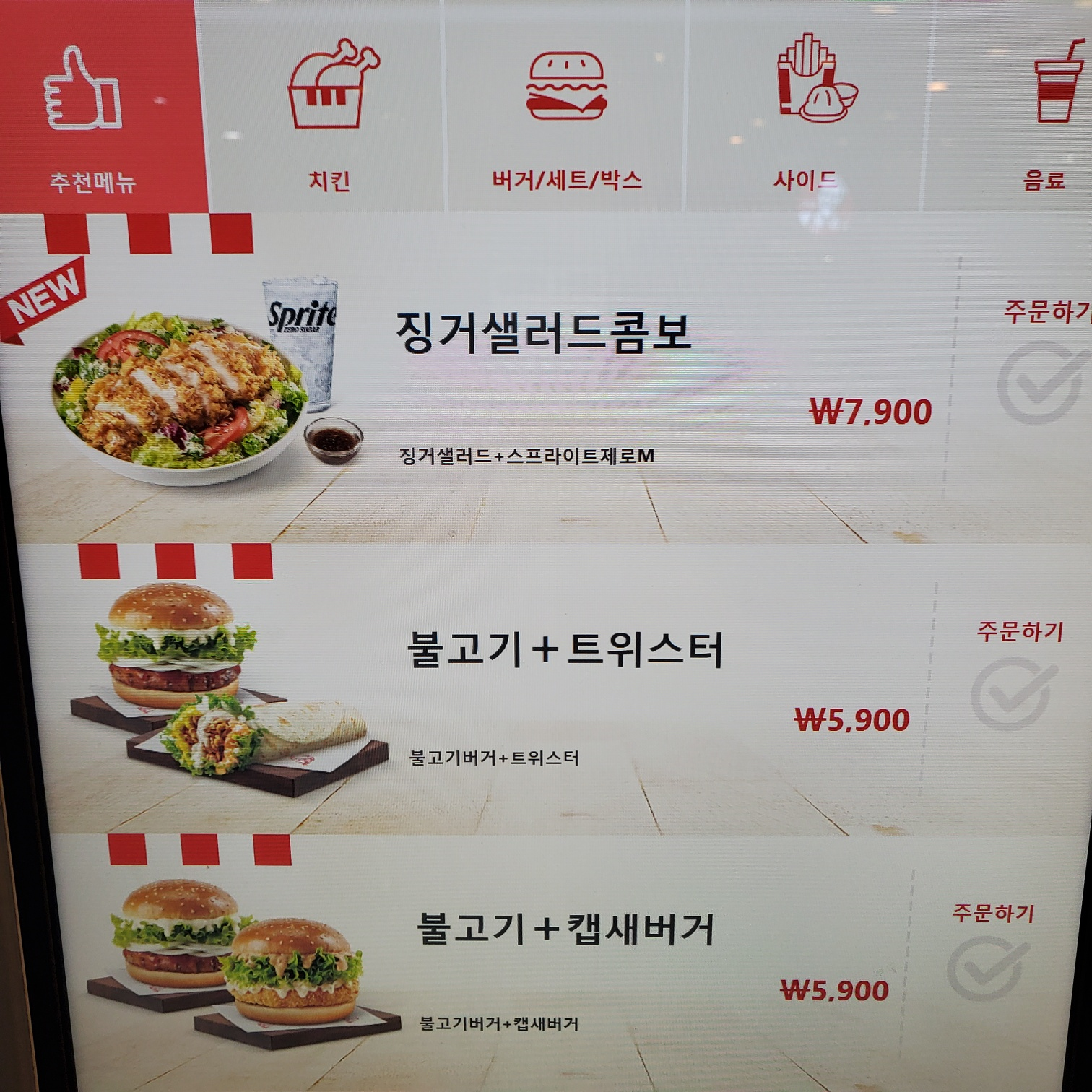 KFC에서 새로운 메뉴가 그것도 샐러드라 하니 새롭고 꽤나 신선한 것 같다는 생각이 드네요!ㅎㅎ 패스트 푸드를 건강하게 먹을 수 있는 좋은 메뉴인 것 같습니다!ㅎㅎ