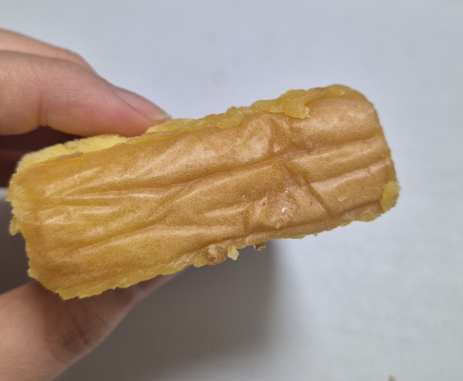 밑에 껍질이 있으니 잘 떼고 먹어야 합니다.ㅎㅎ 이 유산지도 벗겨내니 설탕의 촉촉함이 육안으로 보였습니다. ㅎㅎ