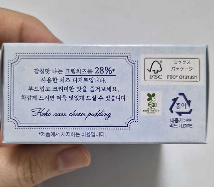 크림 치즈가 28% 들어간 치즈 디저트라고 합니다.ㅎㅎ 푸딩보다는 치즈를 먹는 것 같더라고요.ㅎㅎㅎ