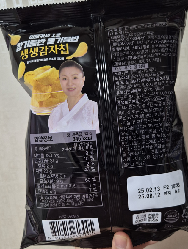 한번 궁금하신 분들은 gs25가서 이모카세 1호 참기름 들기름 생생감자칩을 구매해 보세요.