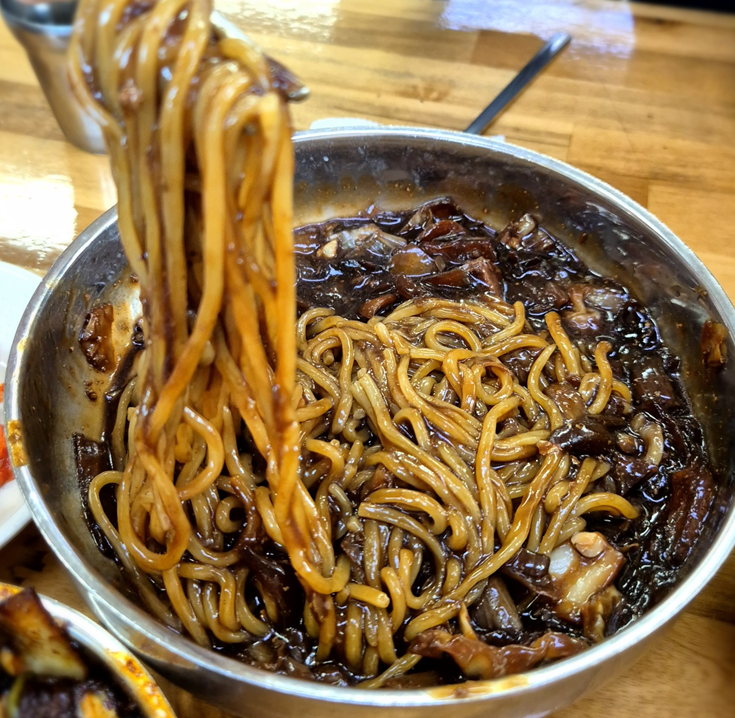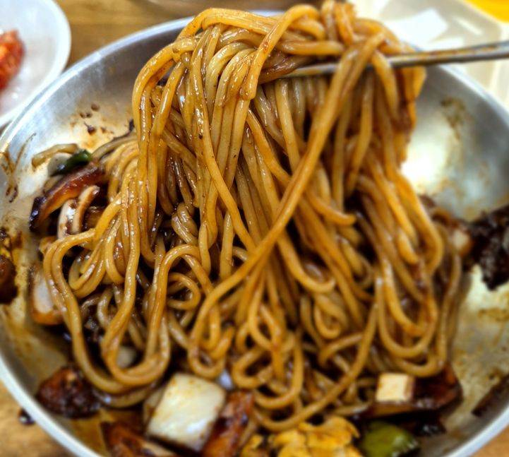 고추짜장이 유명하다고 해서 두 개를 먹으려 했으나 너무 맵다는 이야기를 듣고 일반 짜장면 하나와 고추 짜장 하나를 주문했습니다.