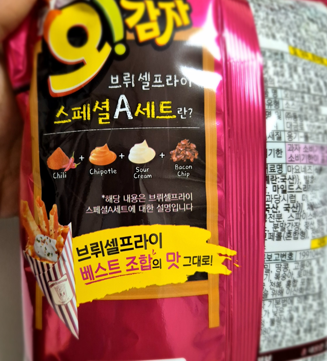 gs25에서만 판매되고 있는 제품입니다.ㅎㅎ 오감자 아저씨도 브뤼셀 유니폼을 입고 있어요.ㅎㅎㅎ 브뤼셀 프라이 스페셜 A세트는 무슨 맛인지 알고 계신가요?ㅎㅎㅎ