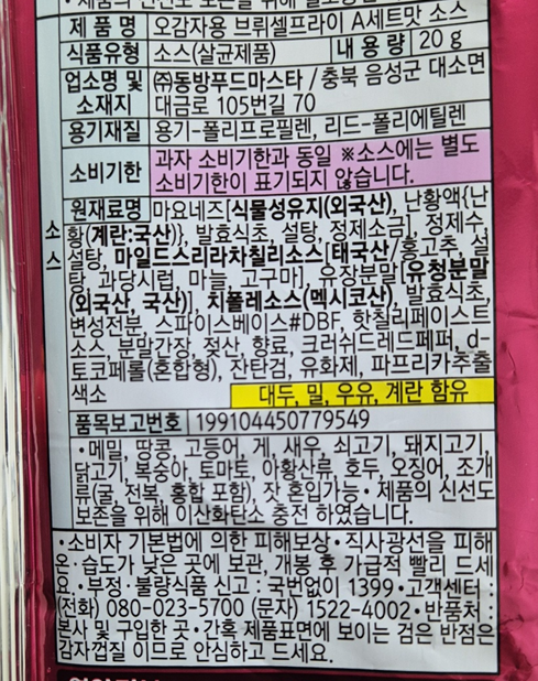 크리미한 소스는 20g정도 되는데 과자의 양에 비해 조금 부족한 것 같아요.ㅠㅠ 소스에는 고춧가루, 파슬리, 향신료, 고추씨 등이 들어가 있으니 걱정하지 말고 드셔도 됩니다.ㅎㅎㅎ